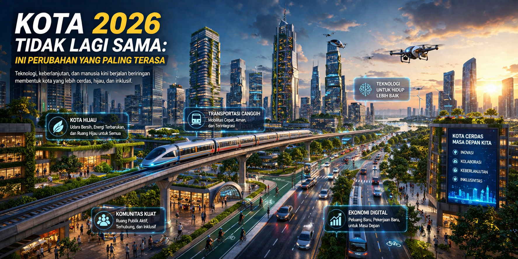 • Kota 2026 berubah melalui teknologi, mobilitas, dan gaya hidup baru